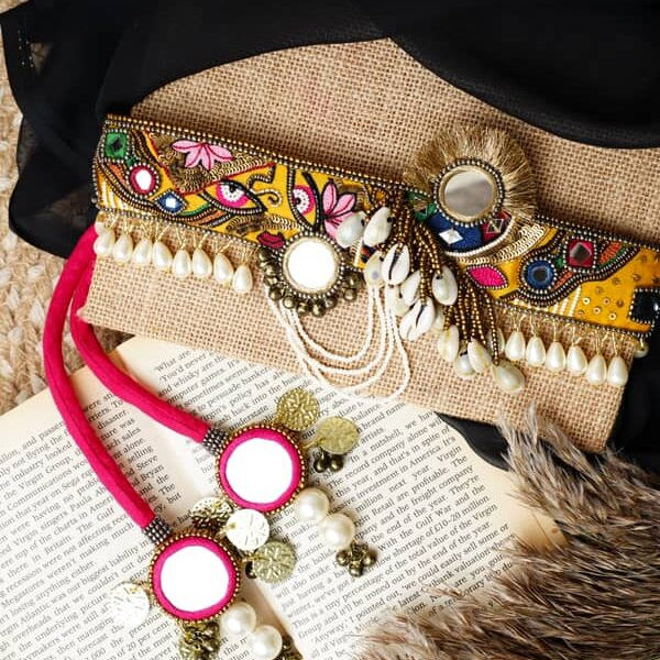 Adah (Kutch mirrorwork choker) pink