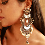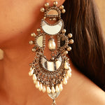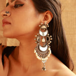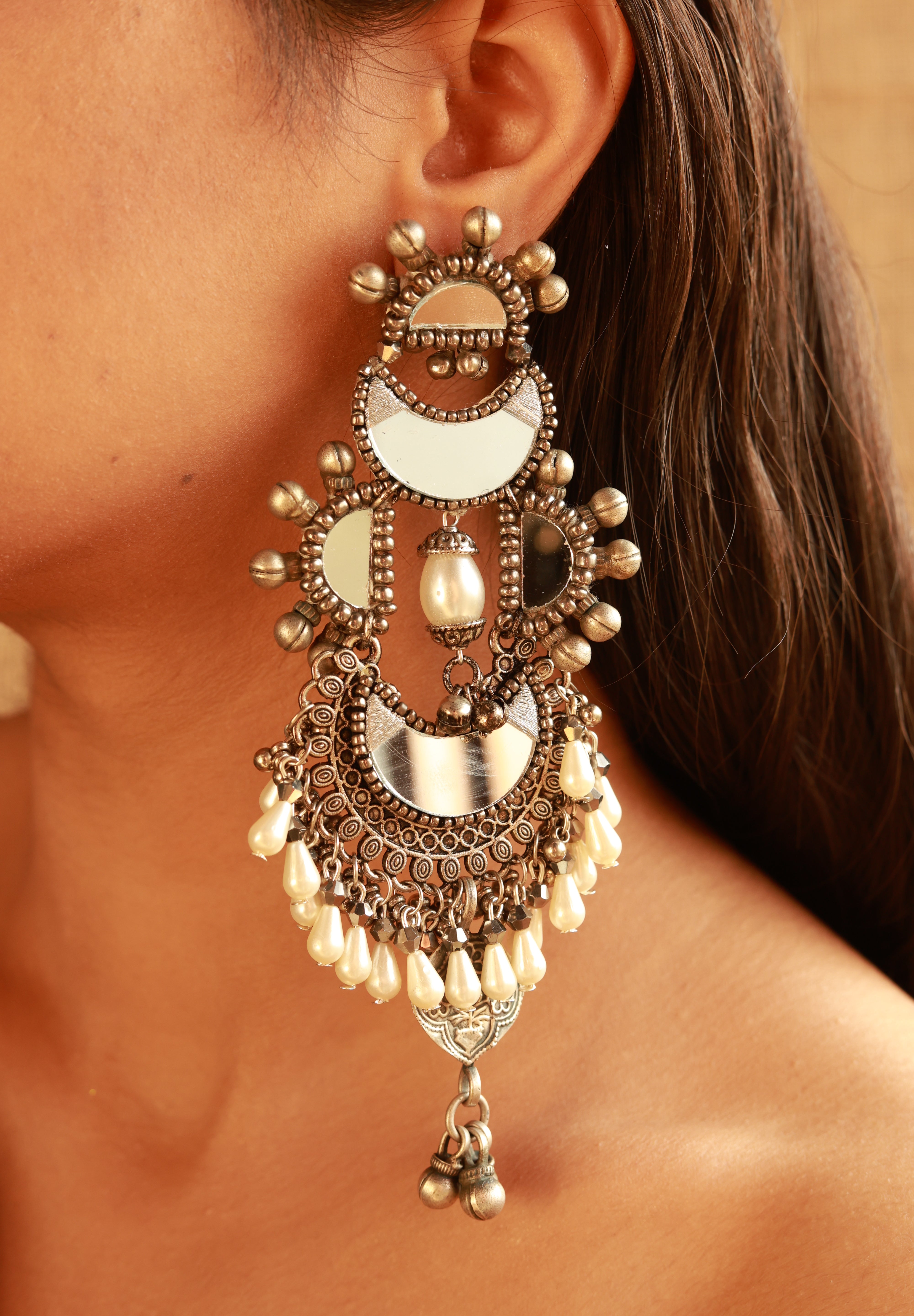 Aayat Danglers – Mirror Studded Earrings Make a bold statement with the Aayat Danglers. Featuring eye-catching mirror studs and chic metal charms, these bohemian mirror earrings add a touch of modern elegance to any look. Perfectly designed to complement printed outfits, they’re your go-to accessory for any occasion, effortlessly blending style and sophistication.