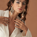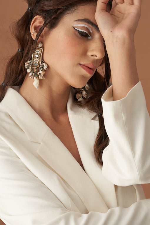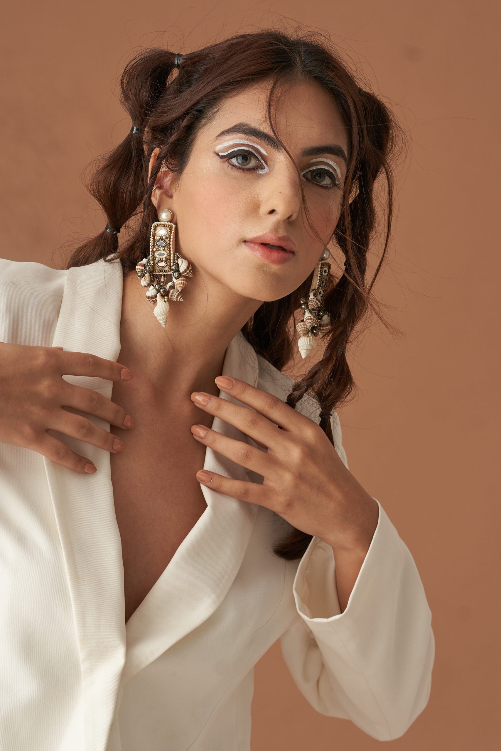 Bohemian SeaShells is handcrafted earrings on textile base which is Inspired by the bohemian elements ,every piece in this collection is Amalgamation of bohemian and tribal essence which makes it different and statement for different occasions to style it .
