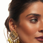 Stud-Briana gold studs are uniquely handcrafted with the grandeur of richness with the doze of bouquet crystal and large pearls.