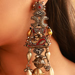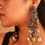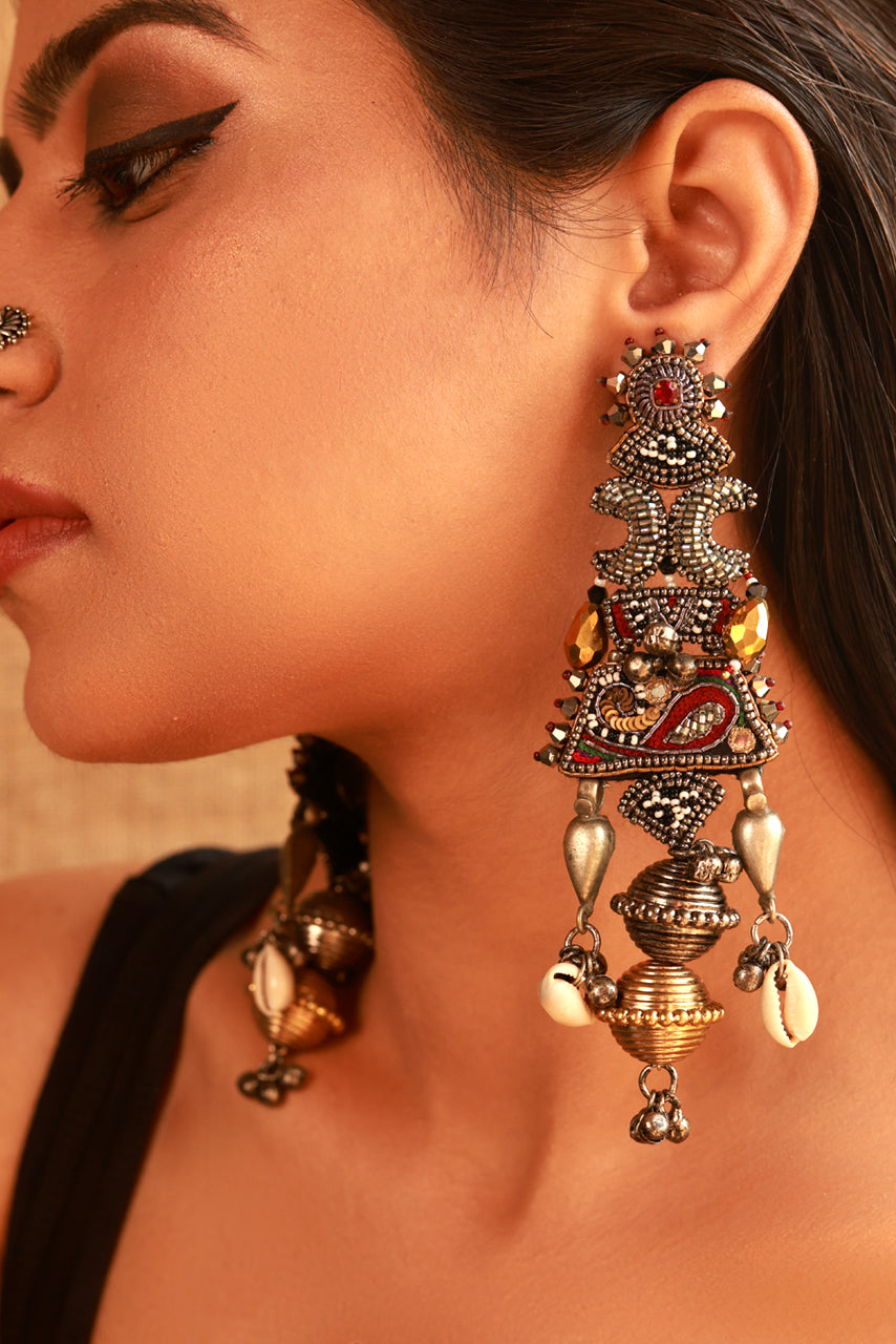 Cresent long moon danglers are highly luxurious danglers in light weight with paisly motif in centre and metallic charms complimenting the look .