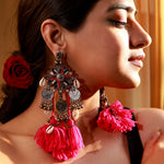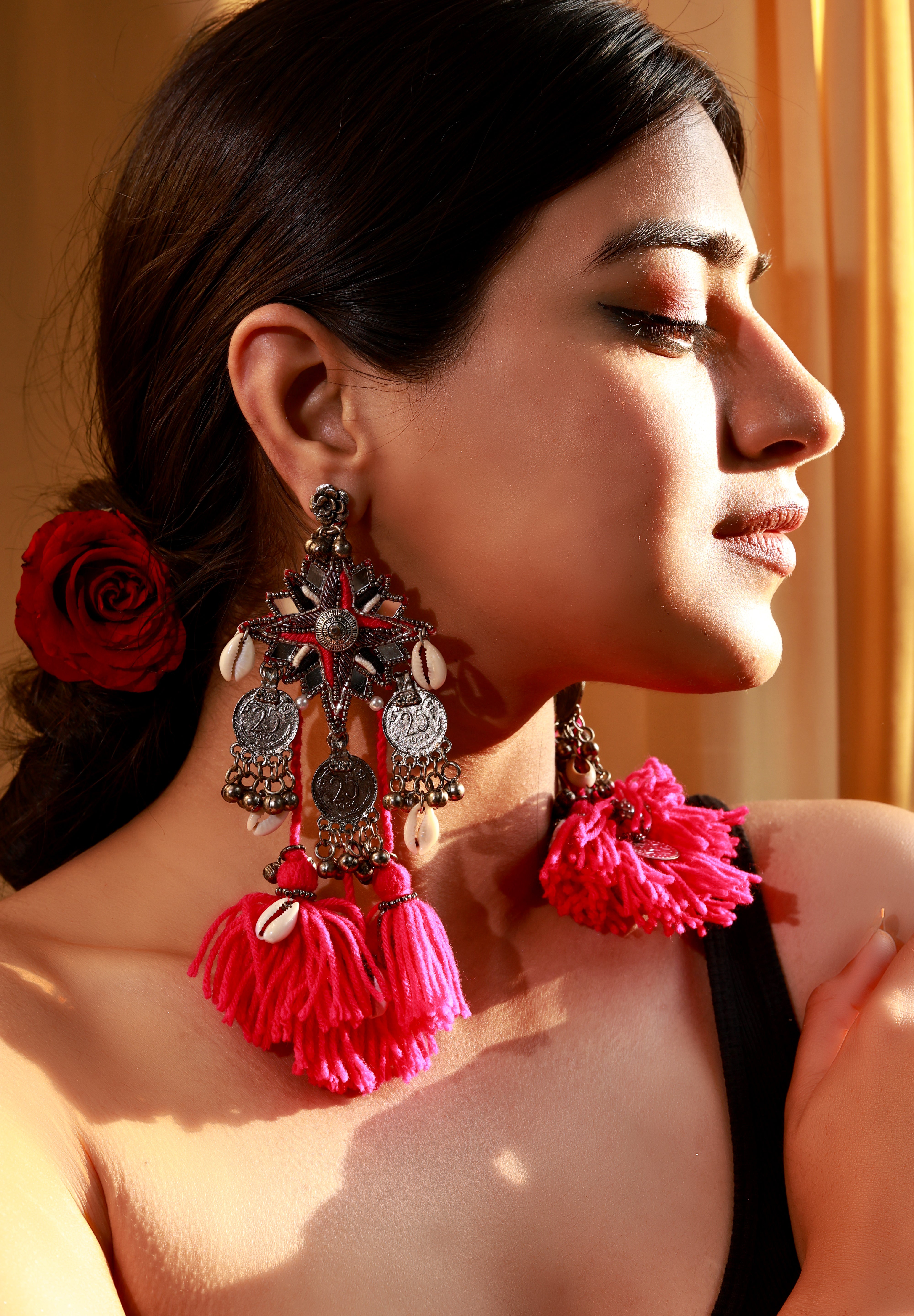 GULAL Earings are colourful creation of adding colour to boring look with essence of bright pink colour which complements every look with Indian or western add a boho touch .