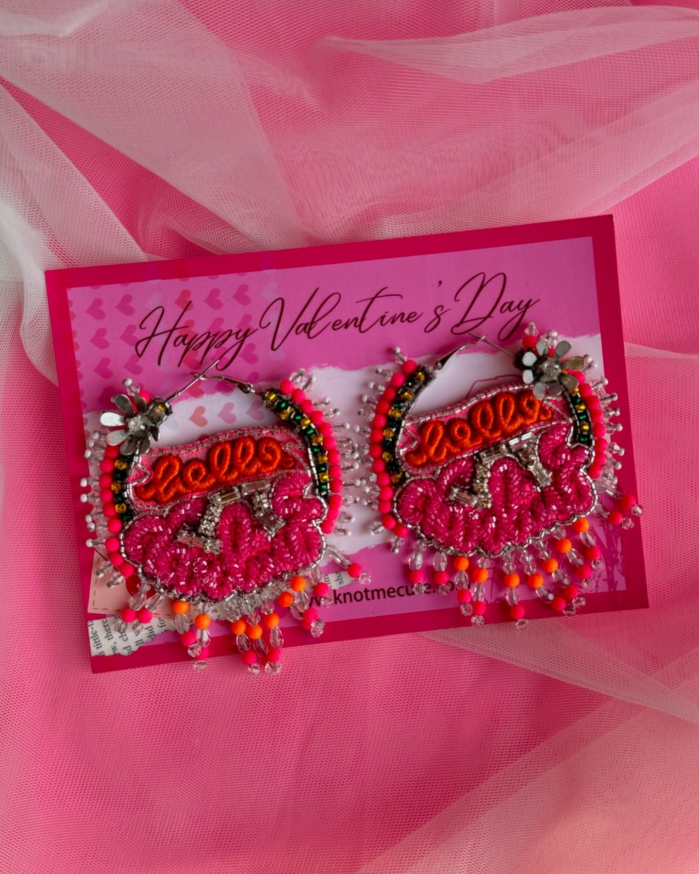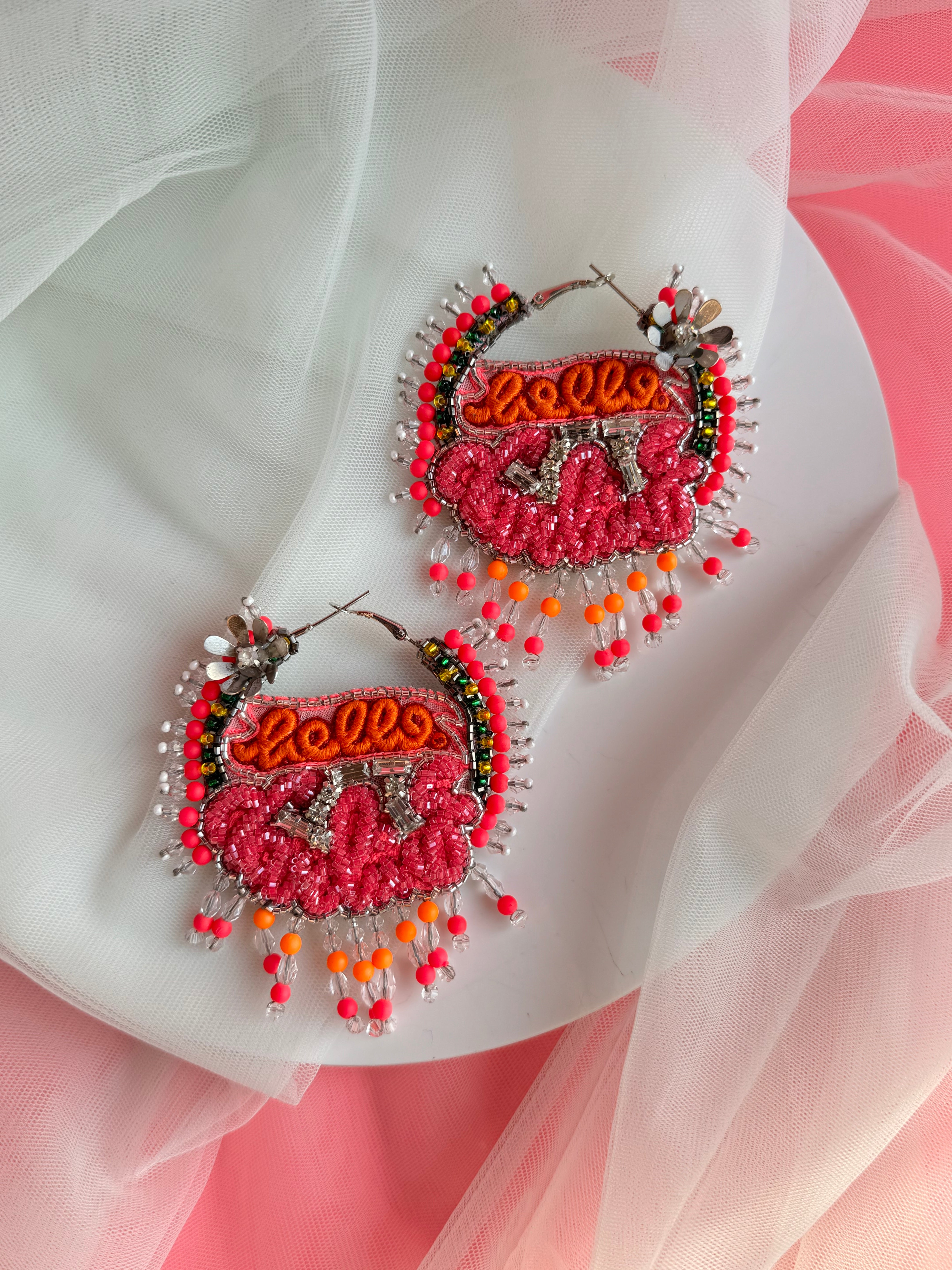 Hello darling hoops are handcrafted neon pink and orange themed hoop , the colours are striking and colourful and perfect for styling this valentines day!