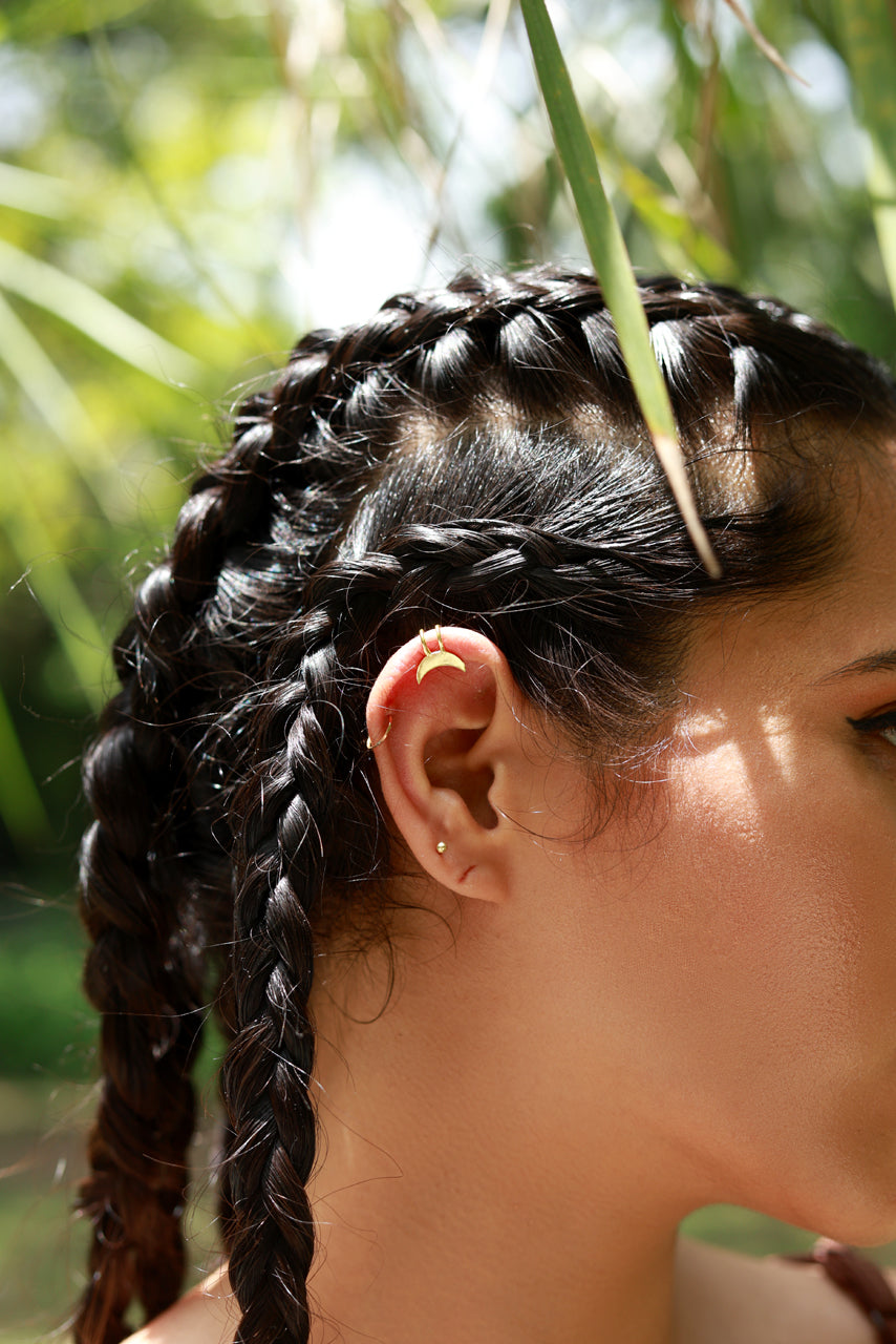Bring the mood to ur ear stack with our moon clip on , is a radiant burst of golden peace and calm —crafted for the ones who like their accessories small but striking. Inspired by celestial moonbursts and rooted in edgy minimalism, this piece is your daily dose of drama without the noise.