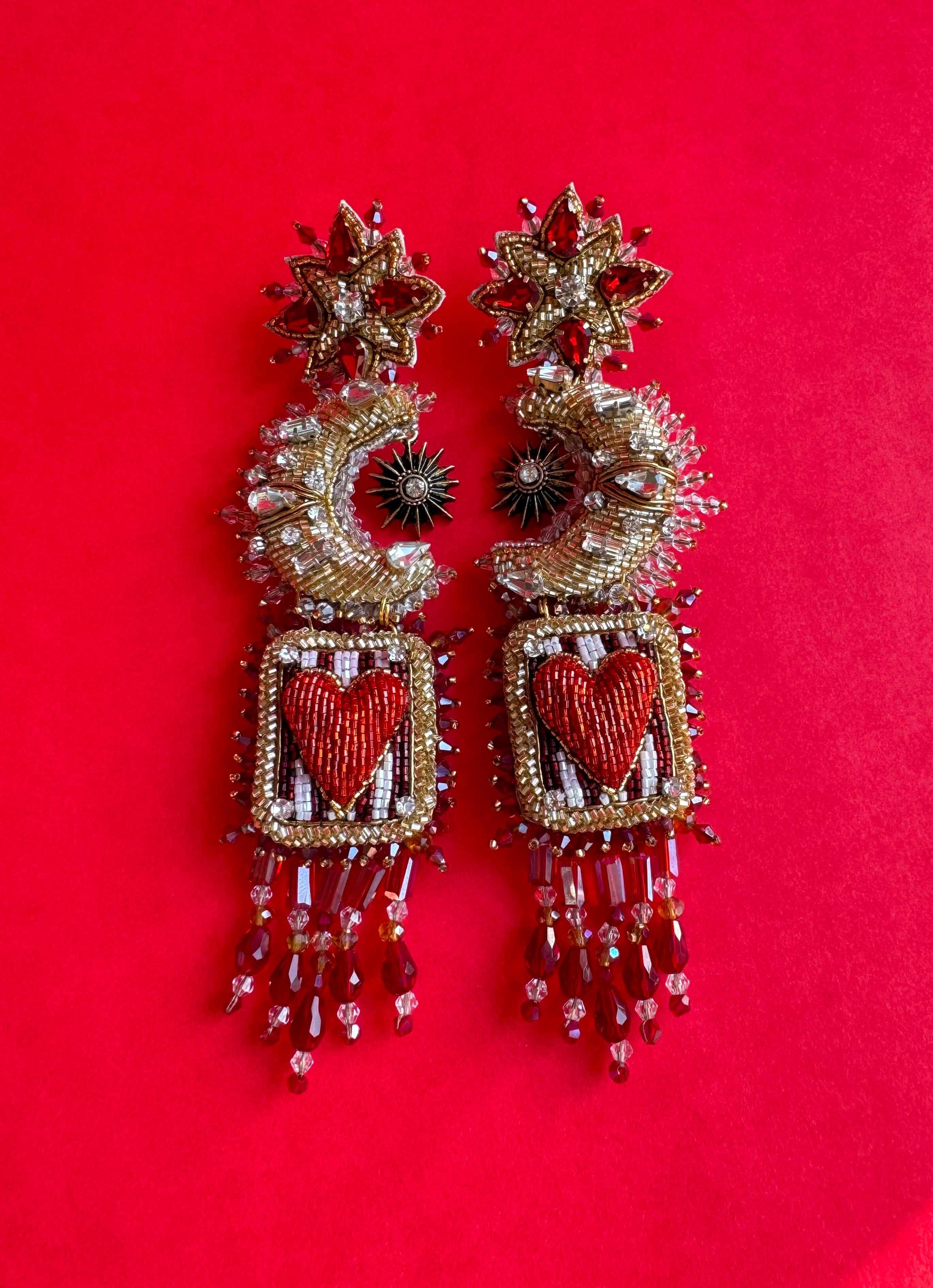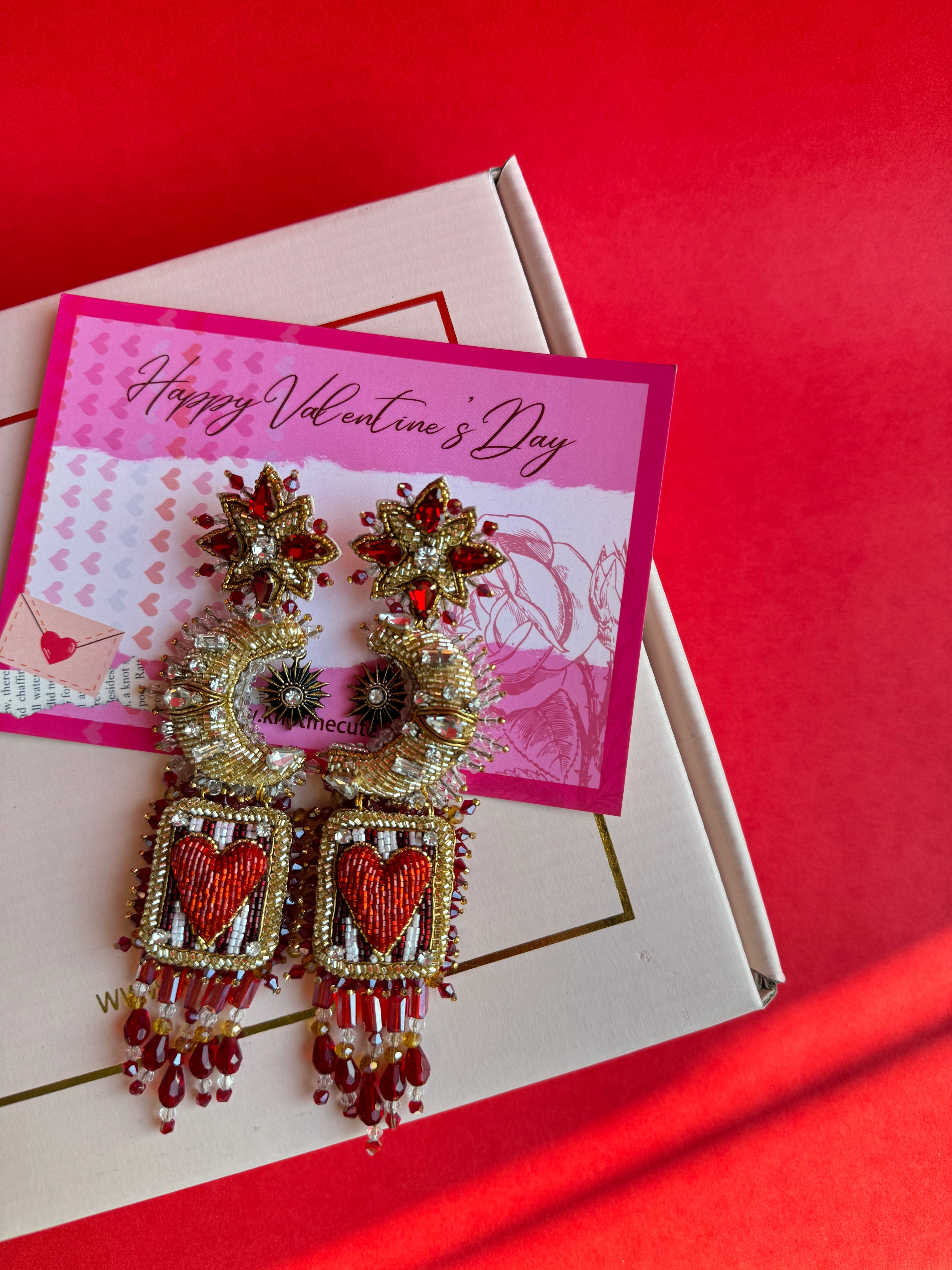 Moonlight love is super luxurious handcrafted danglers perfect to gift to your love this valentines day ! The story of making this lightweight danglers is to showcase the eternal love in a moonlight under the stars these danglers are crafted with high glossy crystals along with super finish luxurious rhinestones embellished with drop hangings .