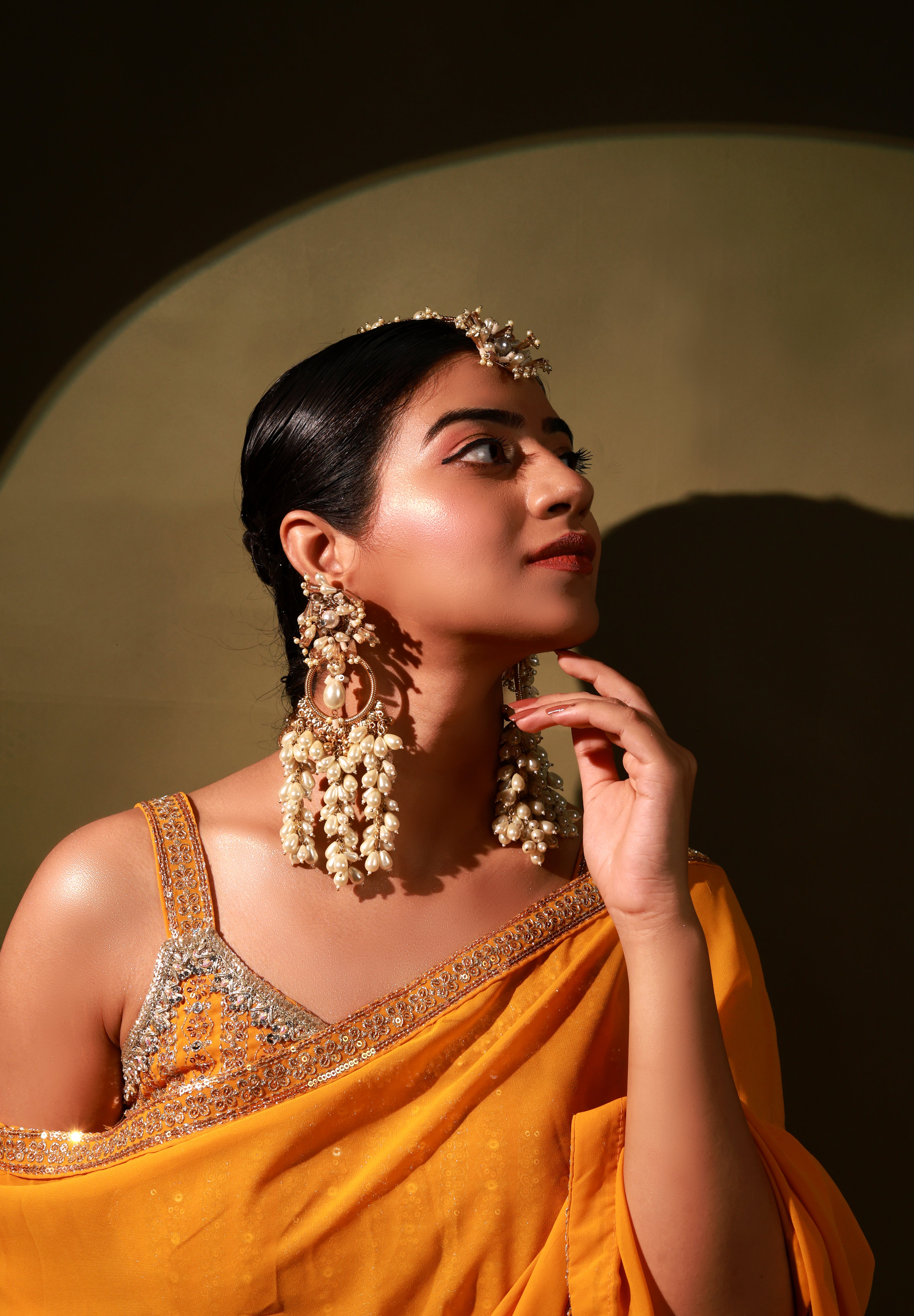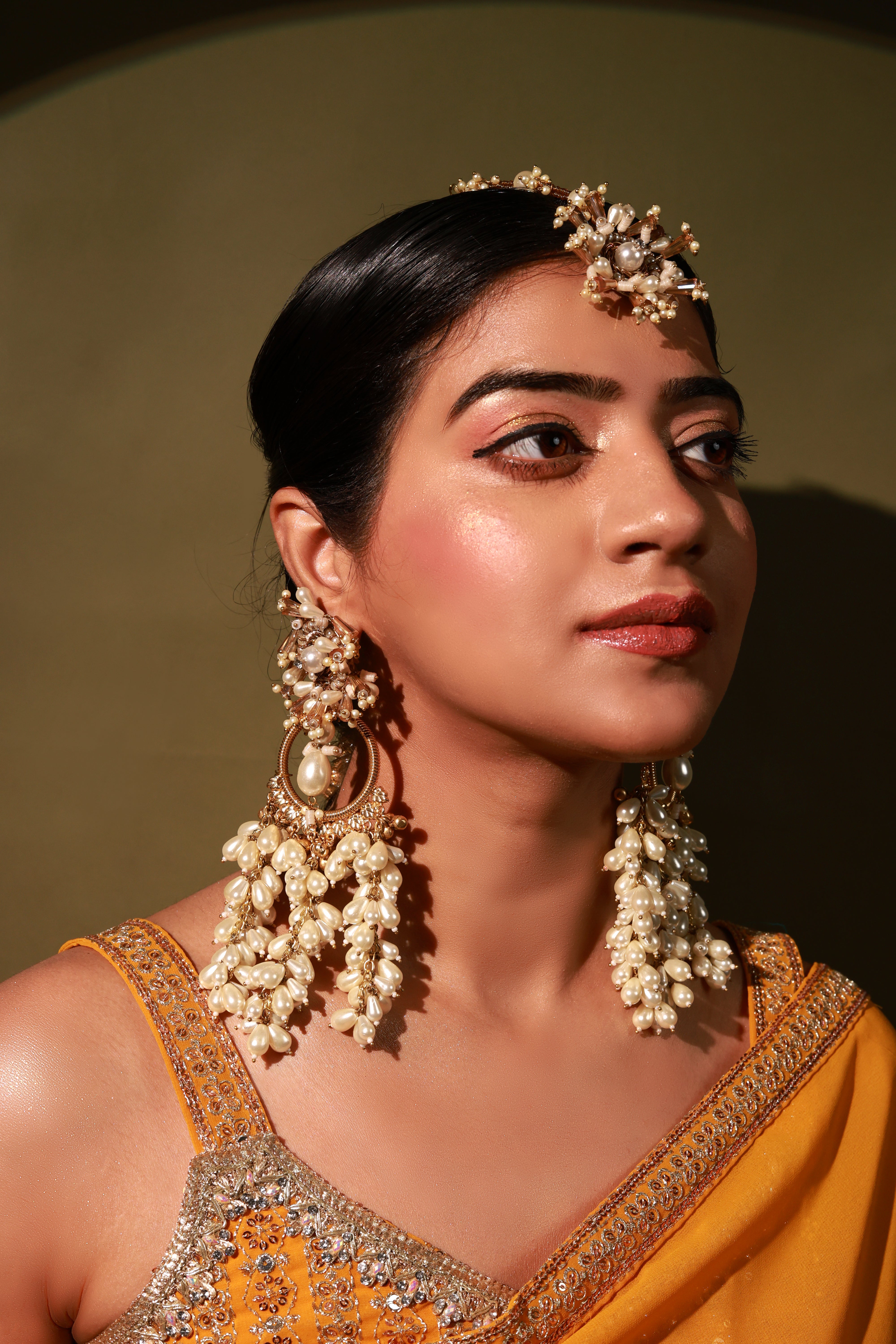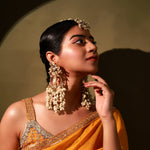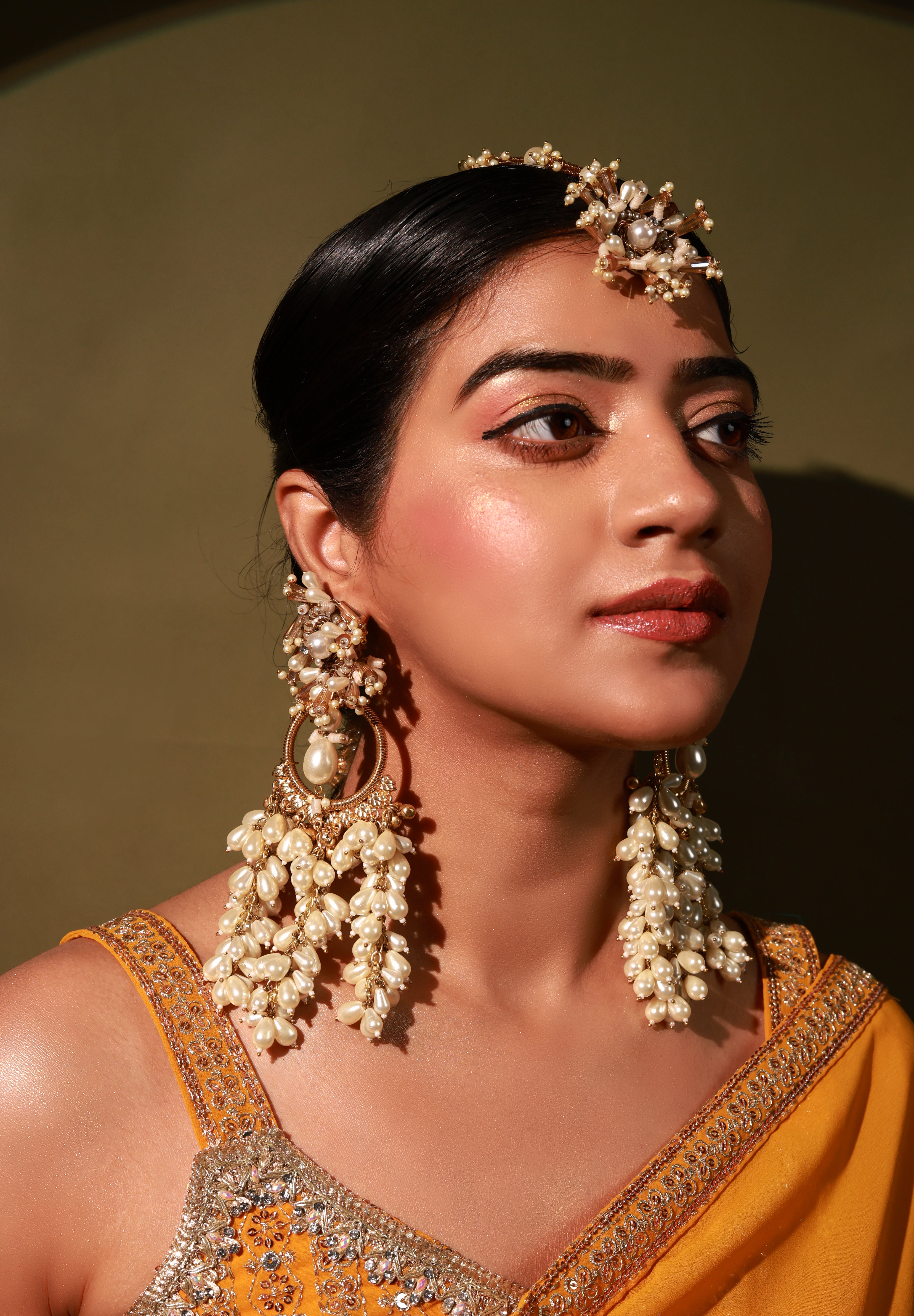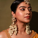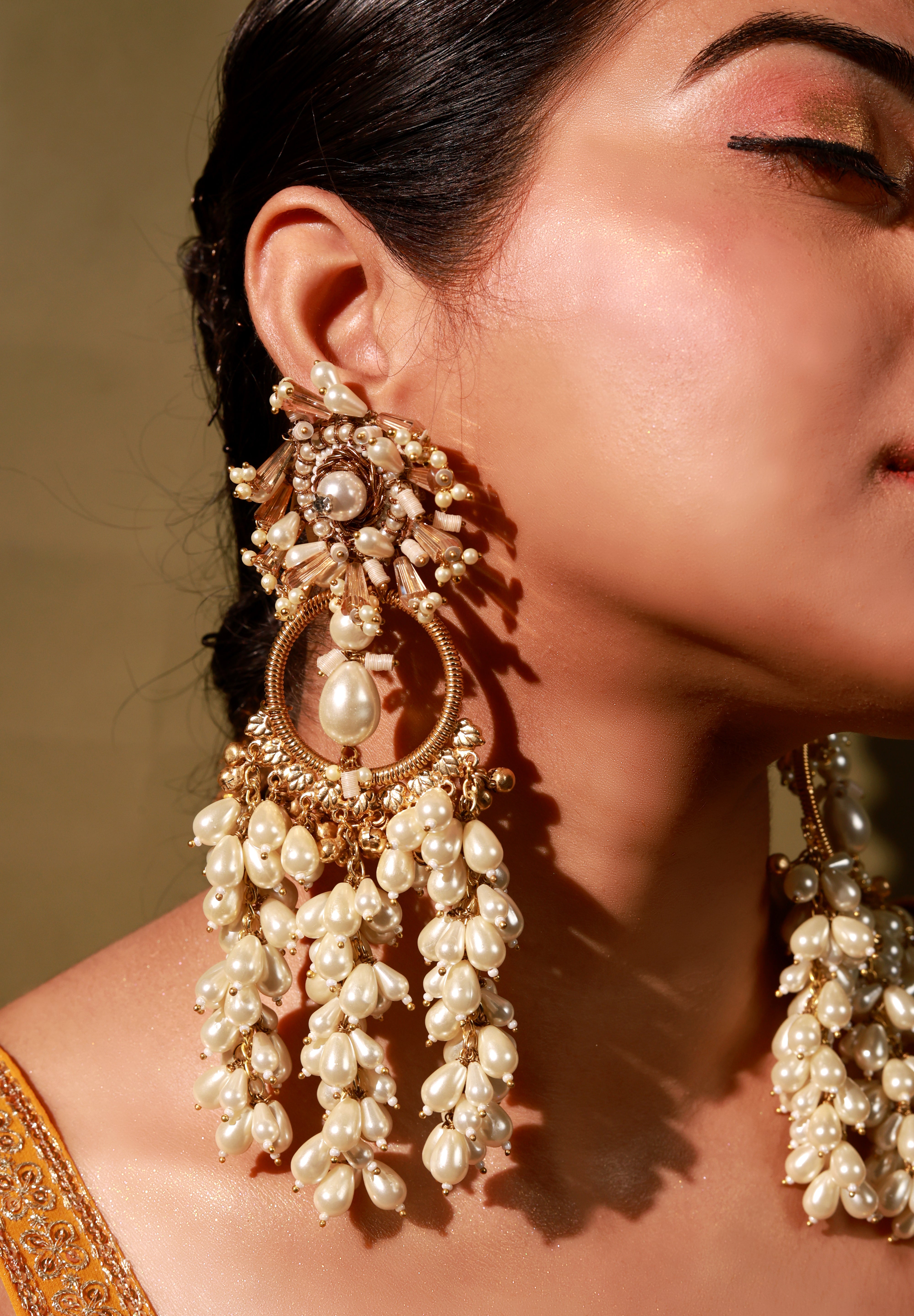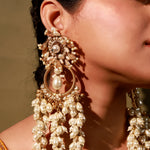 Brass base earrings embellished with crystals , pearls and pearl droplets .perfect for festivity it will compliment everylook