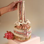 The Sandesh Potli Bag is a beautifully handcrafted accessory that combines elegance and functionality. Made with a luxurious silk base, this bag features intricate details such as beaded wool, pearls, and decorative gotta work. Its spacious interior is perfect for carrying all your essentials during the festive season.