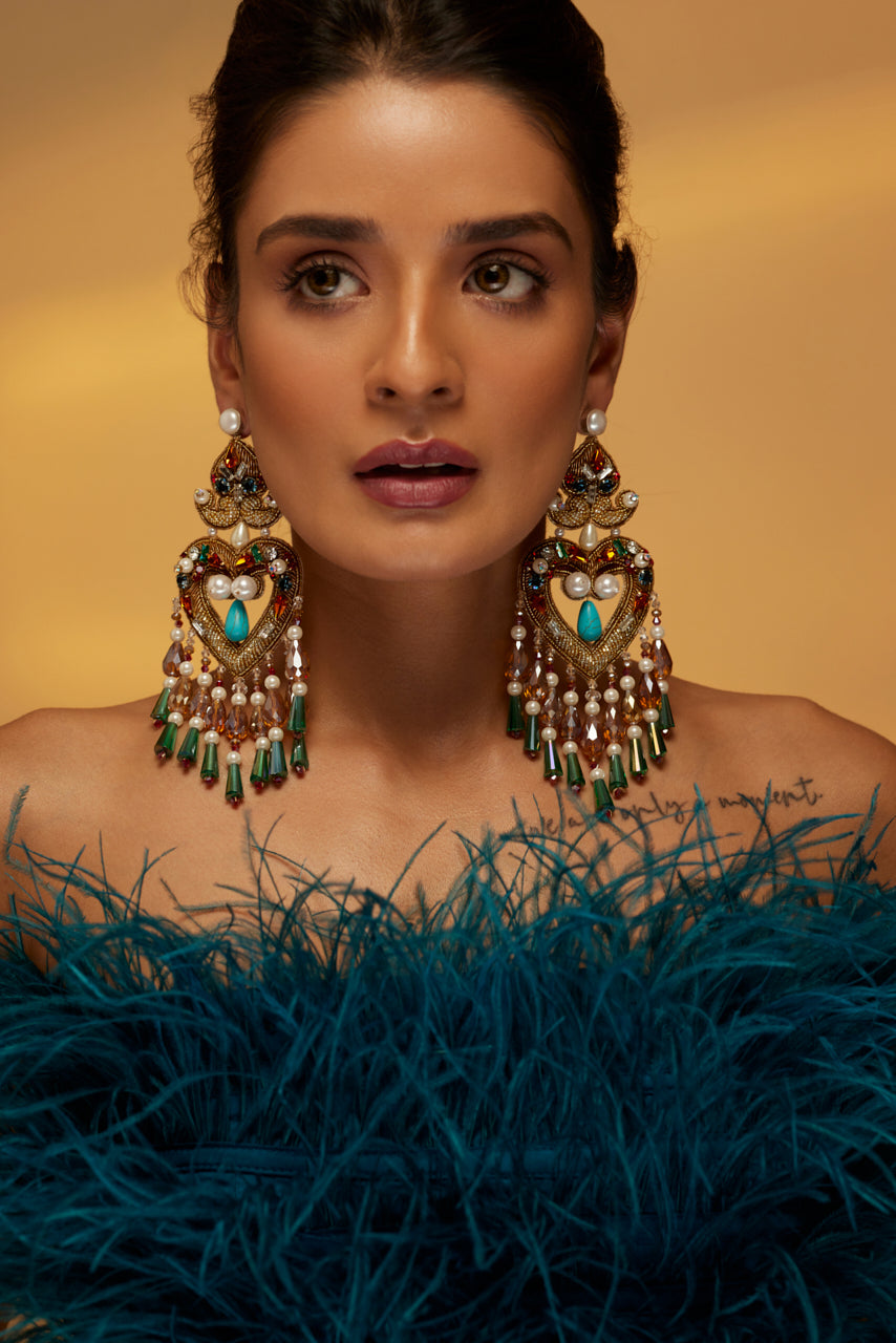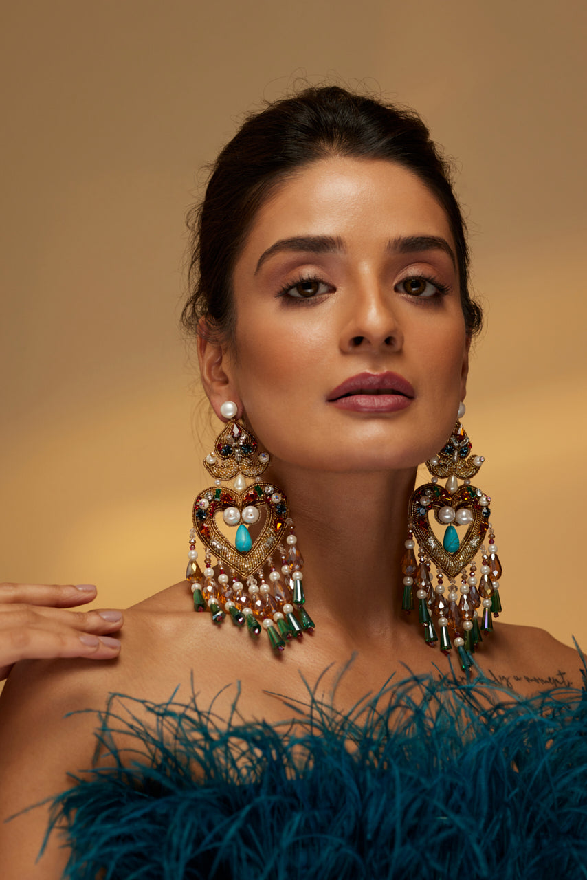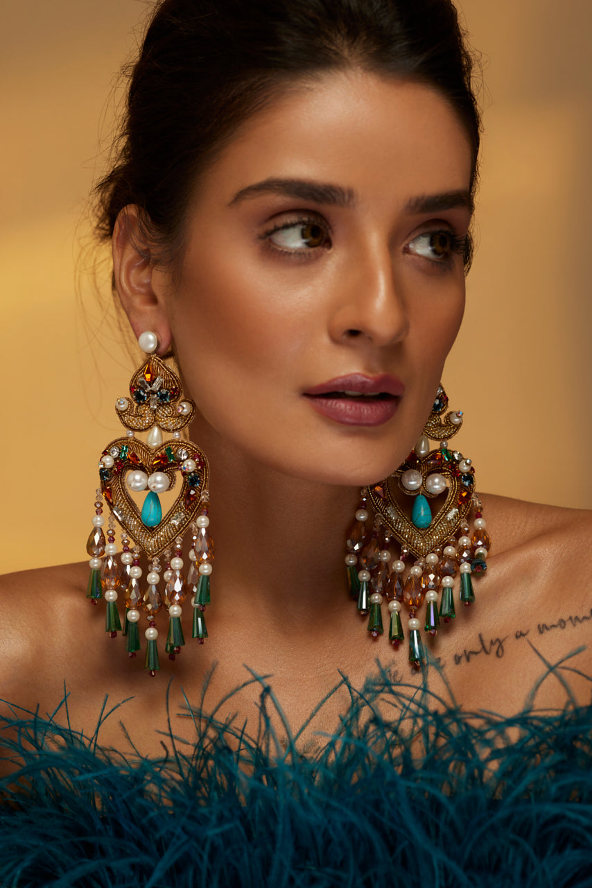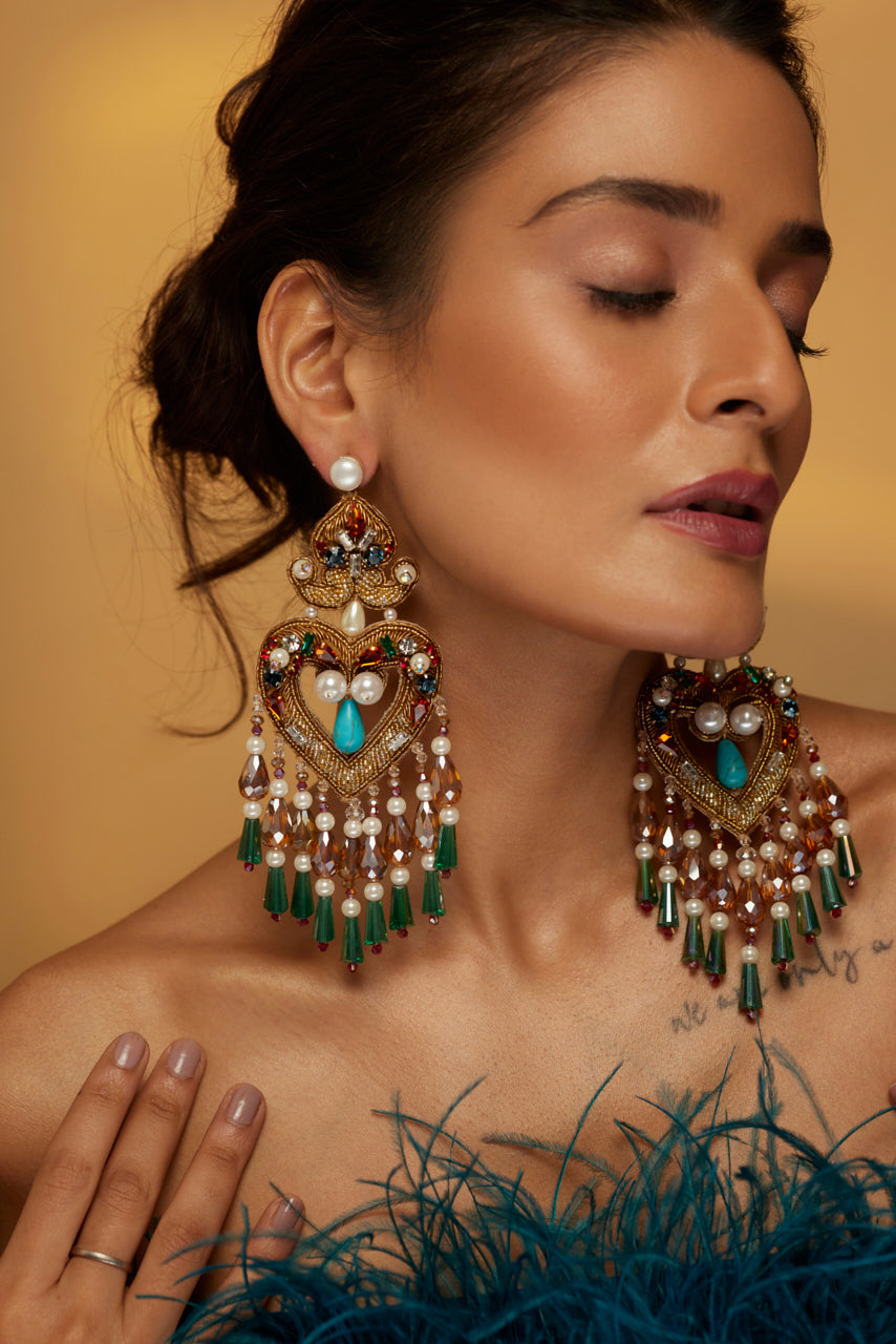 Scarlet Heart danglers is finely handcrafted with its gold glass cut beads and crystals to add perfect amount of richness to any look.