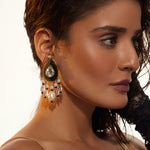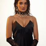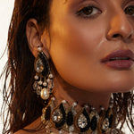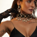 Intricately hand-embellished with metallic wires and quality lustrous glass beads each drop-shaped is so finely embroidered with pure delicacy and craftsmanship. The Choker and Earring are perfect to pair at any wedding occasion finished with glass pearls at the bottom.
